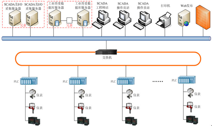 監(jiān)控系統(tǒng)全部采取冗余配置體系,從數(shù)據(jù)采集到SCADA監(jiān)控,全采用雙機(jī)冗余的方式,保障系統(tǒng)的安全性。